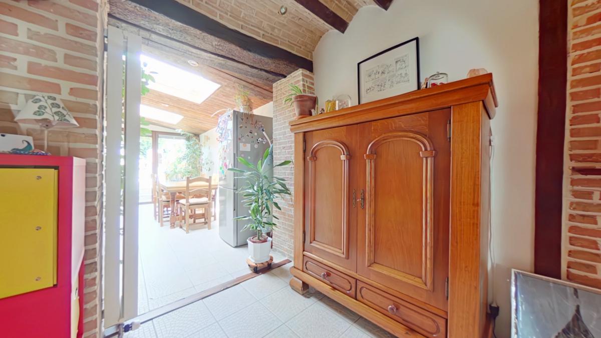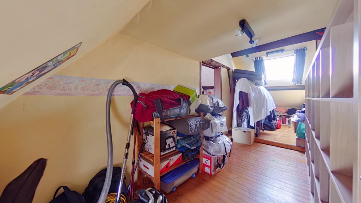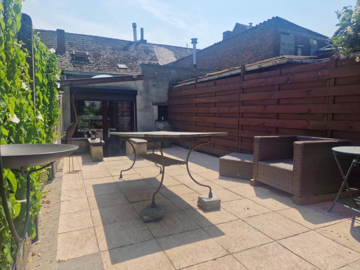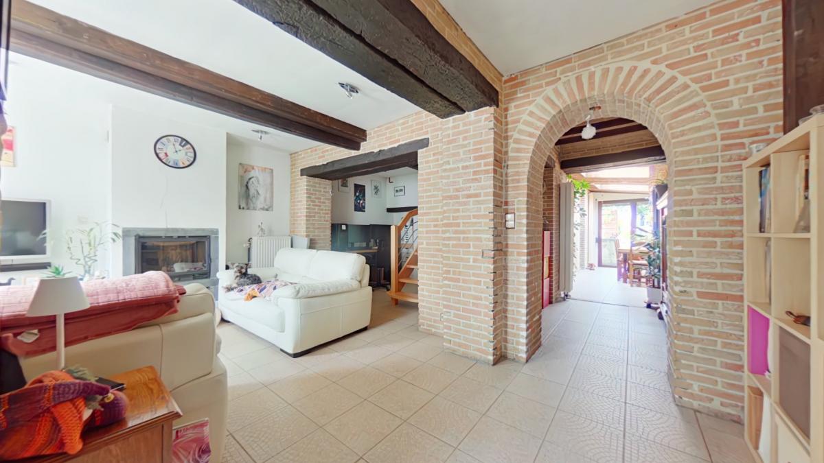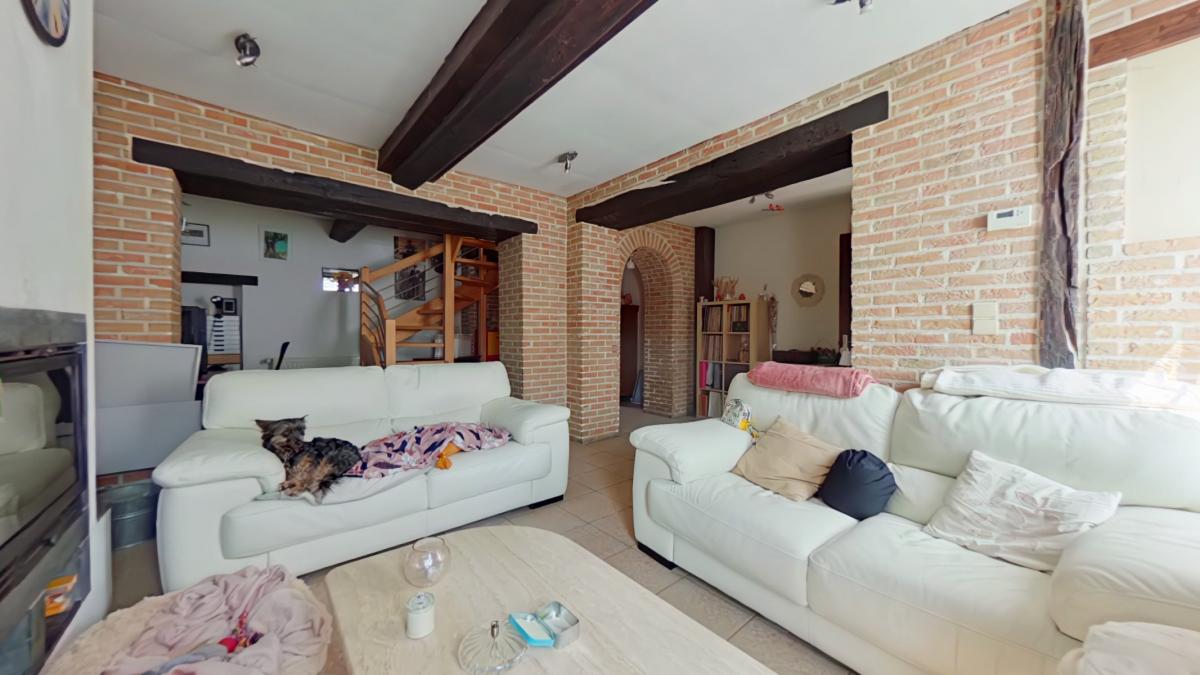 Un sas d'entrée de 1,75 m² (1,75 x 1) Une première pièce de 6,19 m² (2,27 x 2,72) Un salon de 13,32 m² (3,30 x 4,02) Un espace bureau avec escalier vers l'étage d'environ 8 m² (1,98 x 3,43) Un petit hall vers la salle à manger de 4,5 m² Une salle à manger de 11,25 m² (4,98 x 2,25) Une cuisine ouverte sur la salle à manger de 8 m² (2,89 x 2,65), équipée avec : -->évier avec égouttoir et mitigeur -->four ZANUSSI -->taque vitrocéramique -->hotte ZANUSSI ->lave-vaisselle très récent AEG -->meubles en bois Une salle de bain de 6,14 m² (3,02 x 2,03), équipée avec : -->WC --> meuble avec deux lavabos, miroir et colonne de rangement -->baignoire d'angle --> espace pour machine à laver ________________ ETAGE Une première chambre de 16,5 m² habitables (3,41 x 4,86), soit 23 m² au sol (6,77 x 3,41) Une deuxième chambre communicante de 9 m² habitables (1,97 x 4,54), soit 13,25 m² au sol (6,74 x 1,97), avec espace de rangement en mezzanine __________________ AUTRES __________________ Une belle terrasse de 25 m² Un jardin clôturé exposé nord-ouest avec chalet de rangement _________________ INFORMATIONS COMPLEMENTAIRES __________________ Parcelle cadastrée à Lessines, 2ᵉ division, section A, n° 567f Superficie du terrain : 2 ares 60 centiares Le bien est situé en zone d’habitat au plan de secteur Il n’est pas situé en zone inondable Banque de données de l’état des sols : rien à signaler Le bien est relié à l’égout Revenu cadastral non indexé total : 237 €