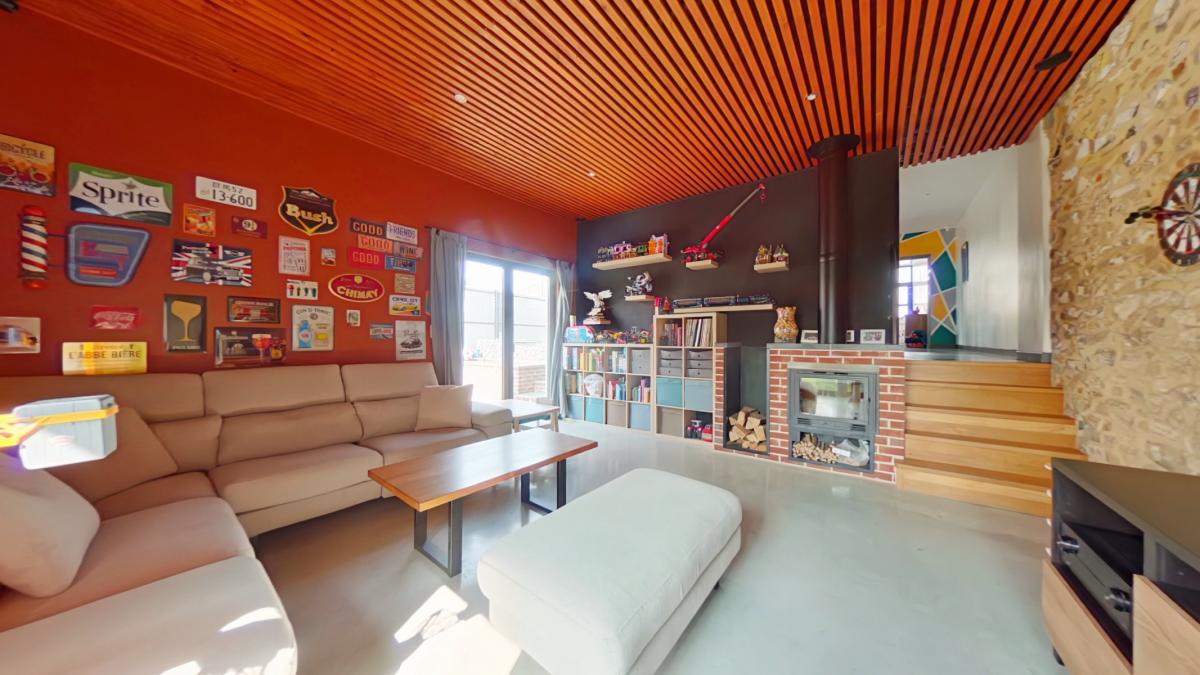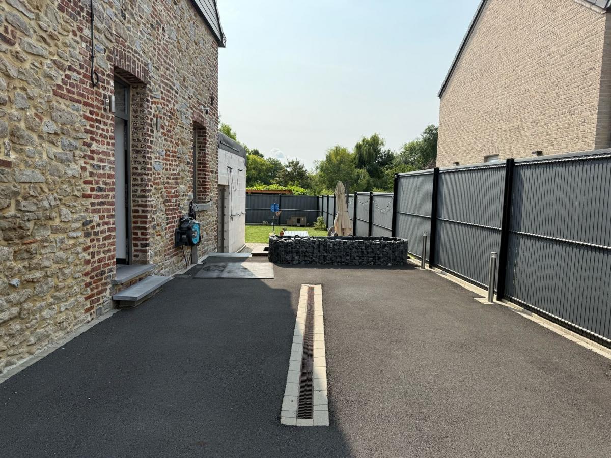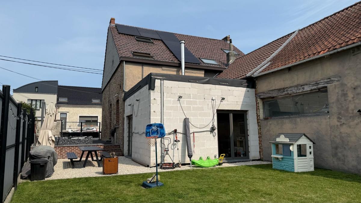 À Basècles, cette charmante maison 3 façades entièrement rénovée offre un cadre de vie moderne et confortable. Elle se compose d’un bel espace de vie lumineux, d’une cuisine équipée, de trois chambres, d’une salle de bain avec douche italienne et baignoire, ainsi que d’une buanderie avec WC. À l’extérieur, vous profitez d’un jardin clôturé avec terrasse, étang, parking et portail motorisé. Le bien dispose du chauffage au sol au rez-de-chaussée, de 10 panneaux photovoltaïques avec batterie, d’une citerne d’eau de pluie de 5000 L. Composition détaillée Salle à manger : 24,28 m2 (4,63x5,23)