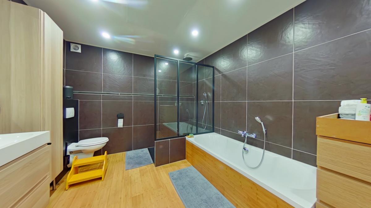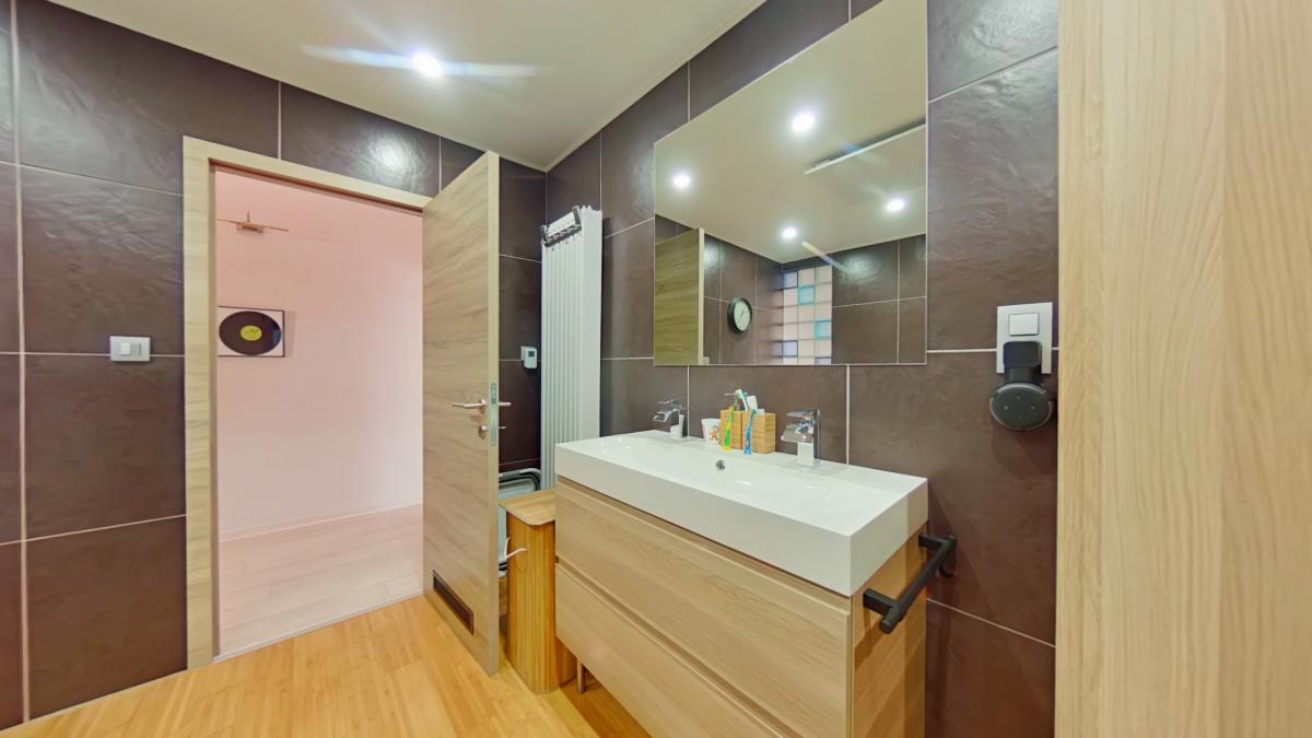 Buanderie avec wc : 7,23m2 (2x3,61) - Wc suspendu avec lave main Salon de 25m2 (4,97x5,1)