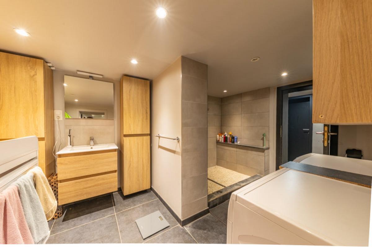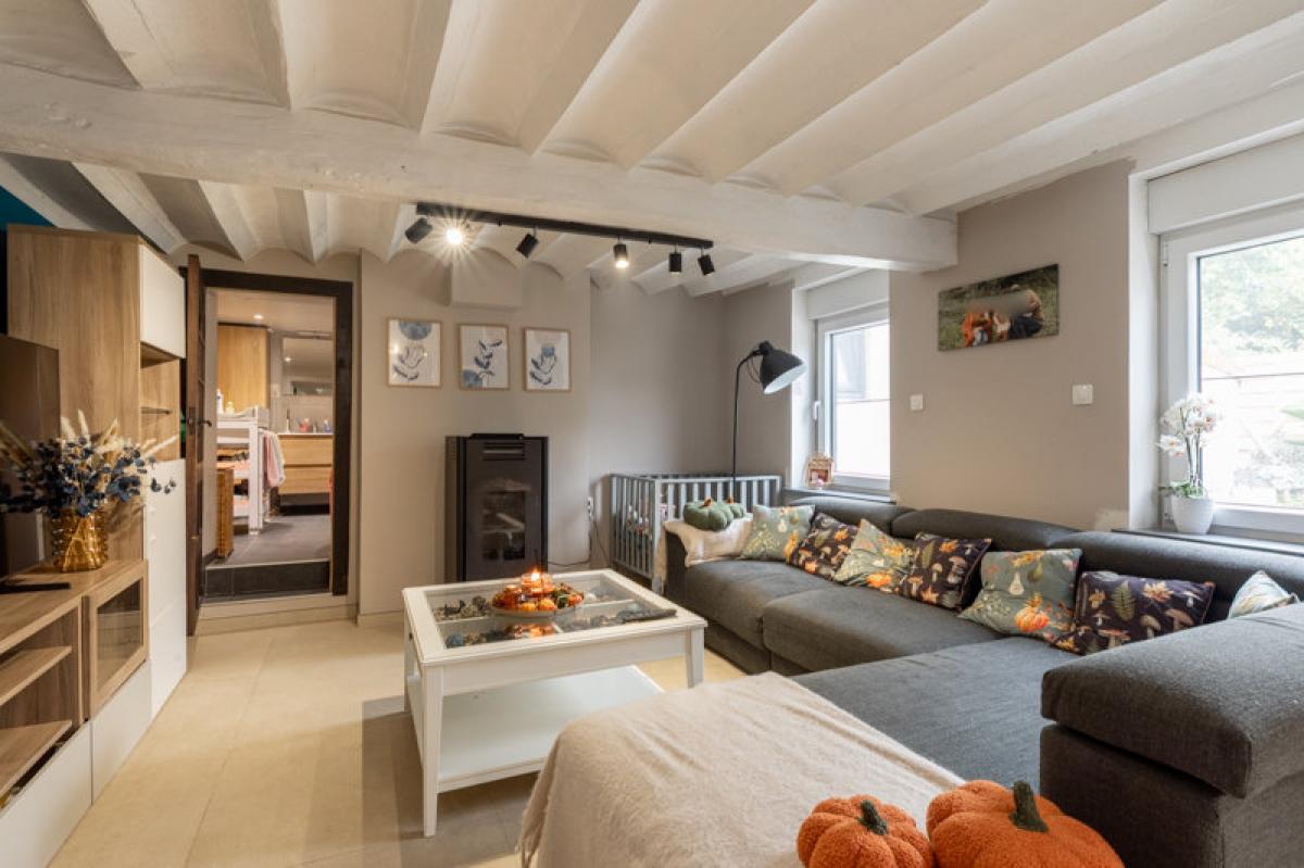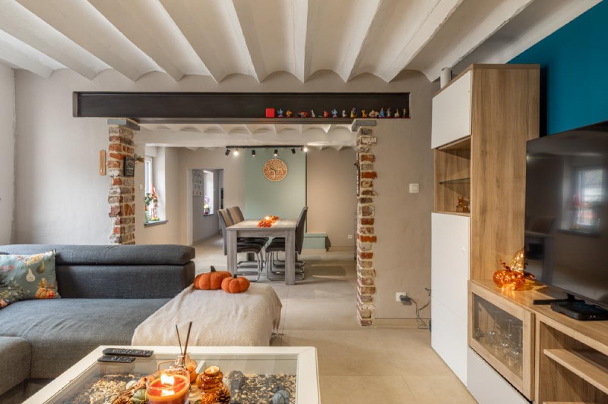 Située dans le beau village d'Houtaing, cette agréable maison familiale offre de beaux espaces de vie : séjour spacieux avec feu aux pellets, salle à manger conviviale, cuisine équipée neuve, salle de bain moderne avec douche italienne, buanderie et grand garage. À l’étage, vous trouverez 4 chambres dont une avec possibilité de salle de bain, ainsi qu’un dressing pratique. L’extérieur dispose d’un jardin entièrement clôturé, d’une terrasse, d’un portail en fer forgé et d’un parking privatif. La maison bénéficie également d’une cave saine, de volets électriques au rez-de-chaussée et d’une électricité conforme.