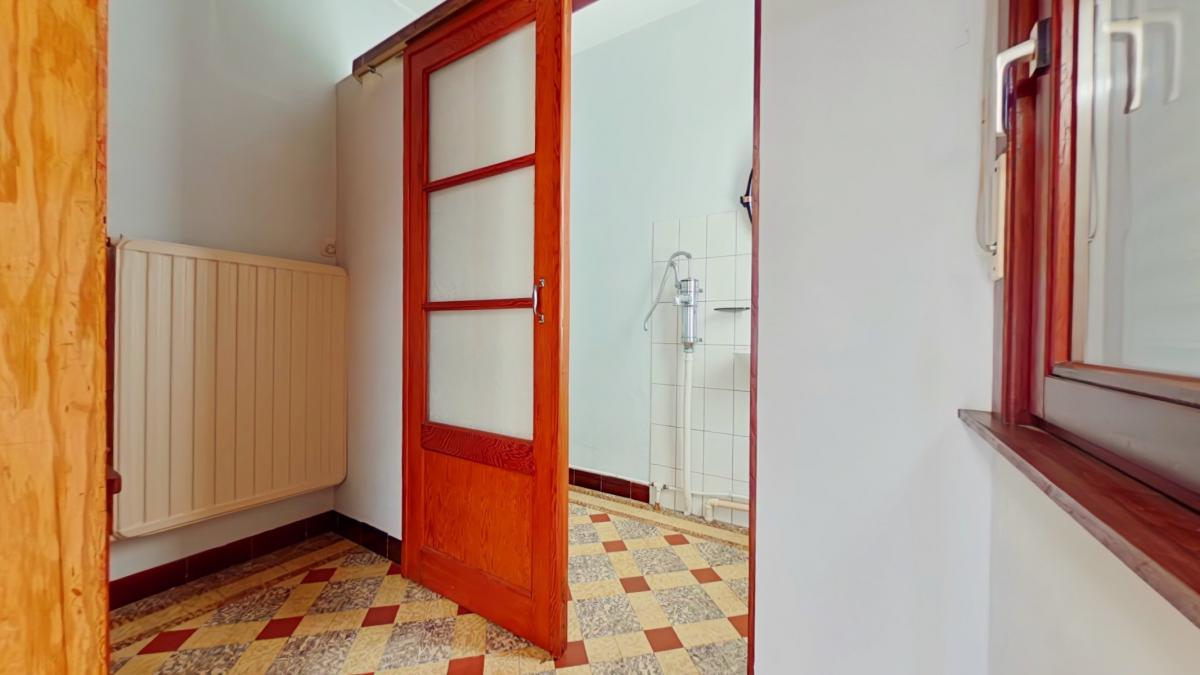 Étage : - Deux chambres d’environ 14 m² - Bureau ou chambre d’enfant de 6 m² - Salle de bain de 3 m² avec baignoire, meuble lavabo et WC