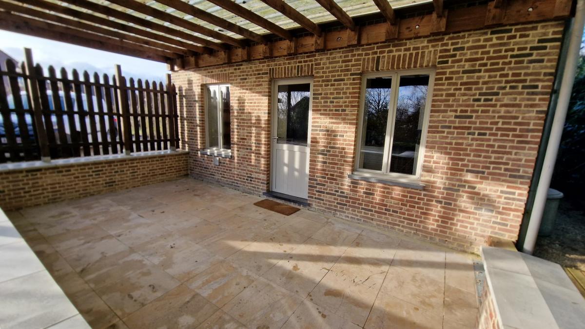 Une chambre en mezzanine au dessus du séjour de 27 m² au sol Extérieur : un grand jardin arboré orienté plein sud Une terrasse adjacente à la maison Un seconde espace sous pergola en bois vers le centre du jardin procurant de l’ombre les jours de fortes chaleurs. Un abri de jardin pour ranger outils, tondeuse, et réserve de pellets. Un grand parking privé pouvant accueillir environ 4-5 voitures. Informations complémentaires : Parcelle cadastrée à Lessines Huitième division (Ghoy) section B numéros 703/k et 702/k superficie totale des parcelles : 10 ares 20 centiares revenu cadastral non indexé : 256€ En zone agricole au plan de secteur Ath-Lessines-Enghien En zone d'assainissement autonome (présence du fosse septique) n'est pas repris à la banque de données de l'état des sols Hors zone inondable