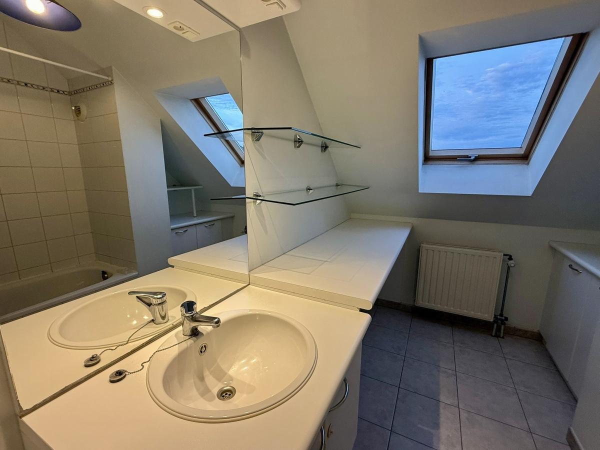 Appartement 2 chambres de 90 m2 au 3ème étage avec ascenseur, dans une résidence située à la Rue de l'Abbaye à Ath, comprenant une cave et un emplacement de parking couvert. Composition du bien un Hall d’entrée de 2,23 m² (1,00 x 2,23) un WC séparé de 0,68 m² (0,90 x 0,75 m) Un cagibi avec chaudière au gaz de 2,48 m² (0,85 x 2,92 m) Un séjour d'environ 50m2 - Raccordement VOO - Prise téléphone - Parlophone Ouvert sur la cuisine équipée - Four, Lave-vaisselle, Réfrigérateur, Taques vitrocéramiques, Évier double Un hall de nuit de 1,77 m² (1,04 x 1,70 m) Une salle de bain de 5,28 m² (2,2 x 2,4 m) - Baignoire classique - Meuble évier - Raccordement pour machine à laver et sèche-linge